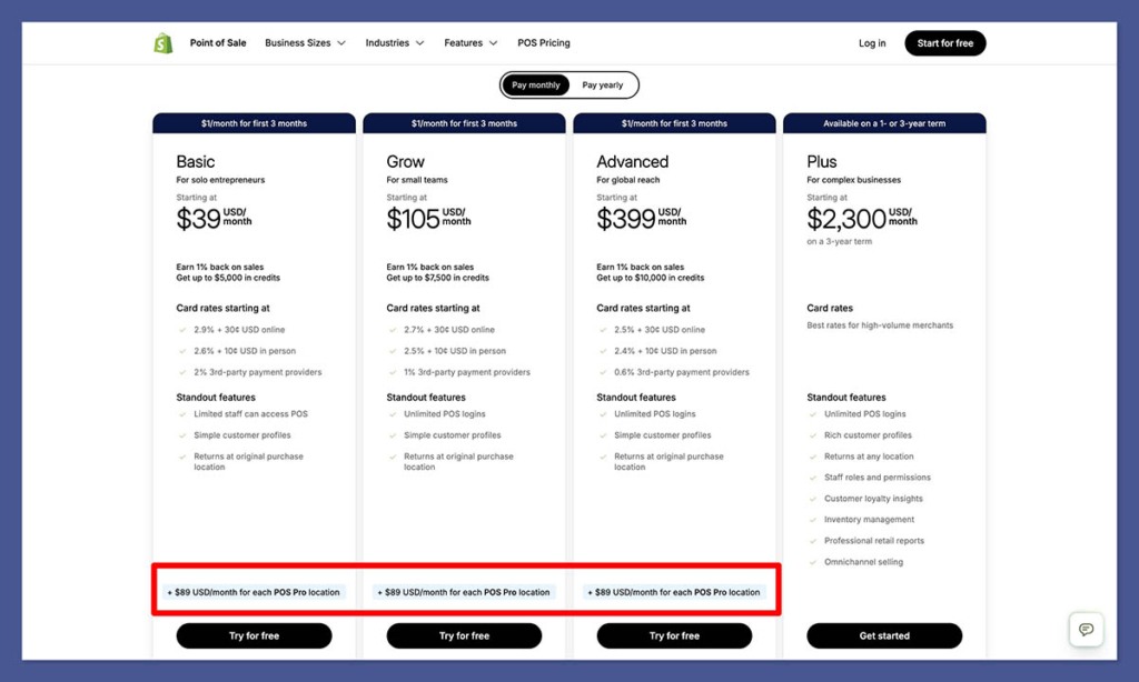 | Solid POS solution for hybrid online/physical businesses | Transaction fees apply if you don’t use Shopify Payments |