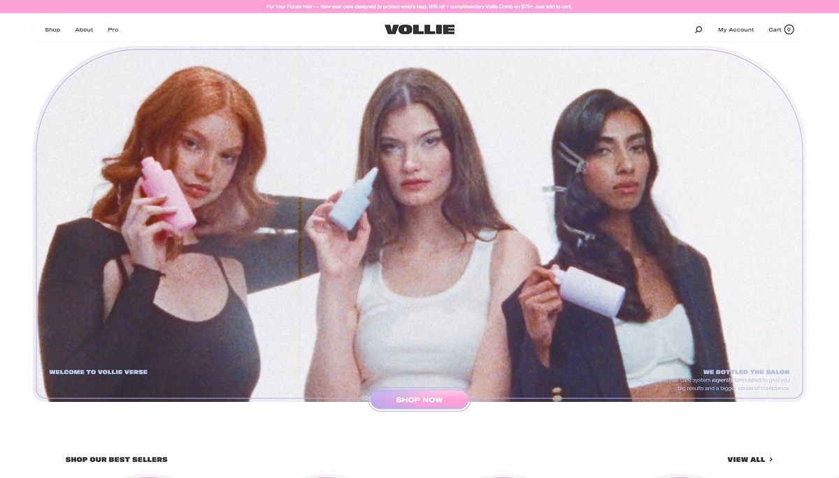 Vollie is a salon-inspired haircare brand selling a small, curated lineup focused on treatment and shine, including a softening and strengthening hair mask, a pre-water protective hair oil, and a resurfacing hair gloss, plus bundles and a few accessories. The website design is clean and premium, built around bold headlines, generous whitespace, and large product and lifestyle visuals that keep the shopping path simple. It leans on benefit-led callouts and ingredient highlights within product pages to make the value props easy to scan without feeling crowded.