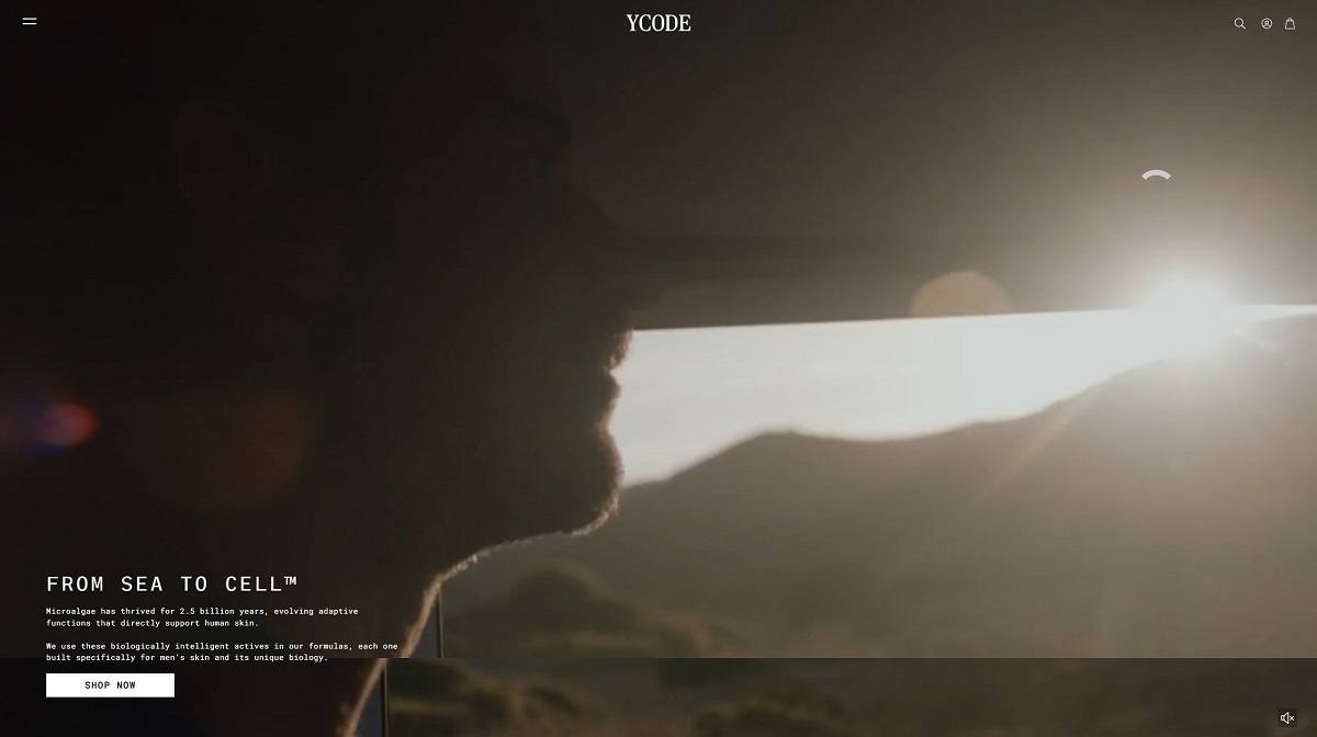 YCODE is a men’s skincare brand selling a small lineup of face products, including an advanced eye serum, hydrating face serum, and mattifying moisturiser, positioned around “marine bioactives” and formulas designed specifically for men’s skin. The website design is minimalist and product-led, using bold hero messaging, large imagery, and a simple top navigation (Shop, Journal, About, Stockists) that moves visitors quickly into featured products.