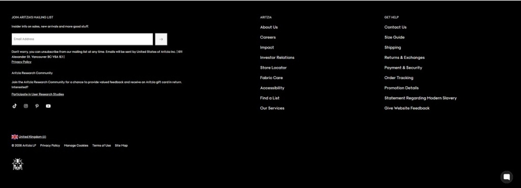 Aritzia Footer Example