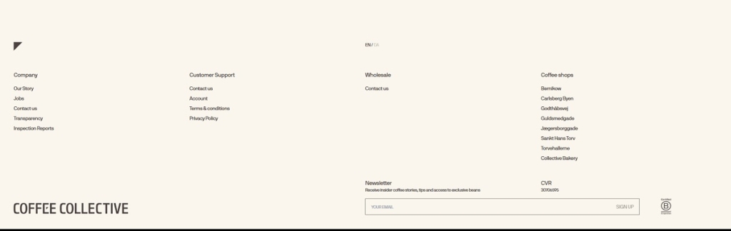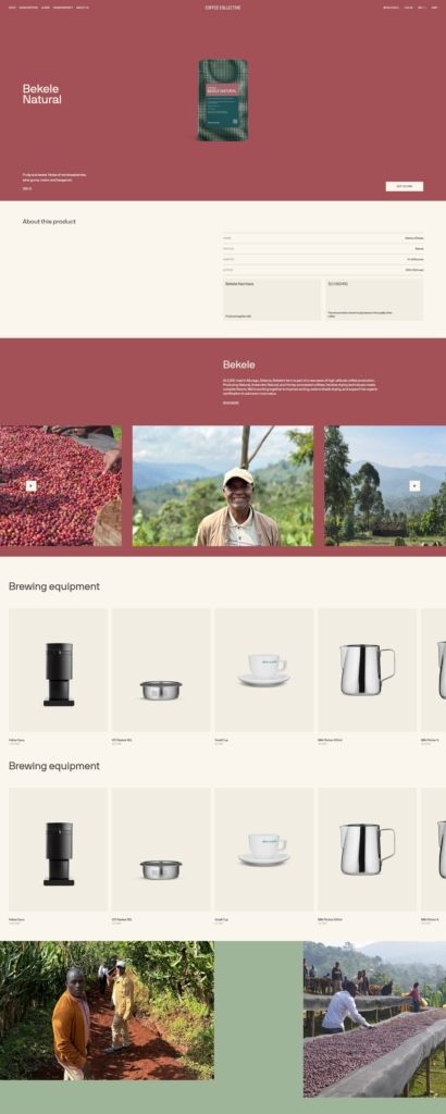 Coffee Collective’s website is clean, visually rich, and user-friendly: large, aromatic imagery paired with elegant typography and well-organized navigation. Their product range includes specialty coffees , brewing equipment, merch, and subscriptions of curated beans. They foreground transparency and sustainability in both design and content.