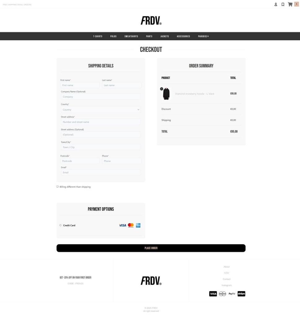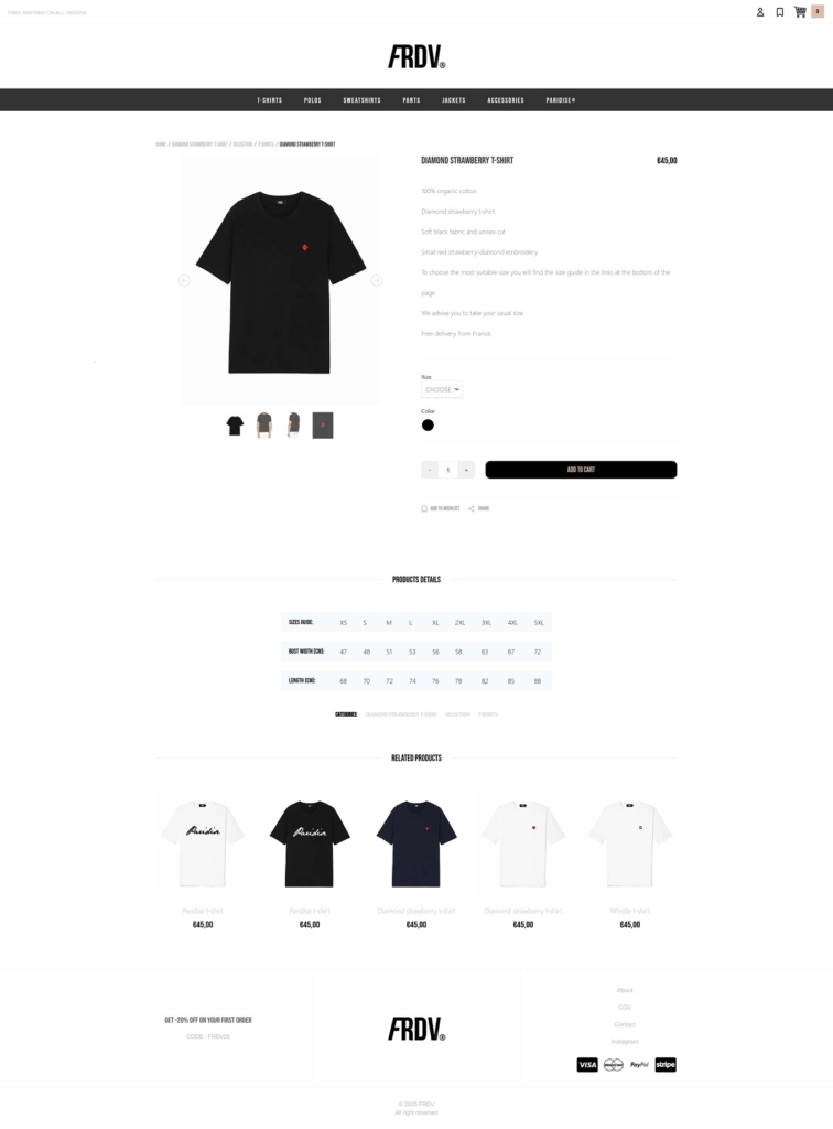 FRDV is a French streetwear brand offering a bold range of urban-style apparel — T-shirts, sweatshirts, jackets, pants and accessories — all with a contemporary, edgy vibe. Their website presents that vibe with clarity and flair: clean, responsive design, smooth interactions and strong visuals that put the clothing front and centre. Navigation and filtering feel intuitive, making it easy to browse collections, explore items, and move from product-discovery to checkout seamlessly.