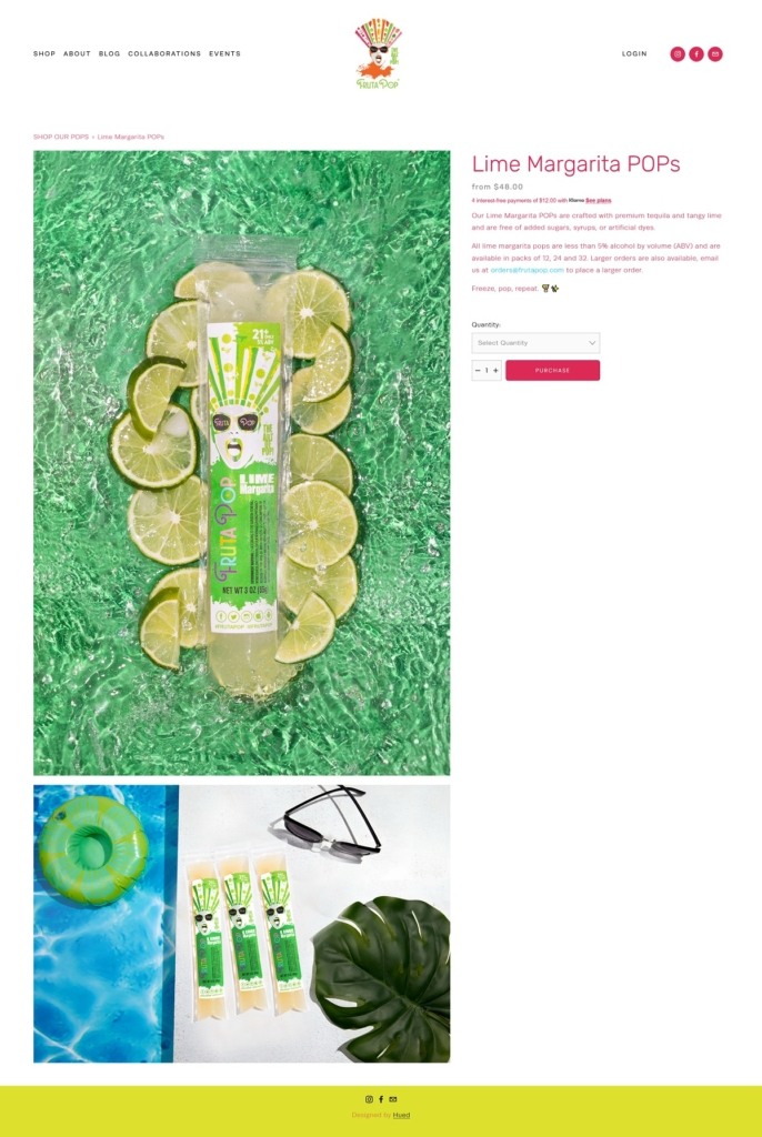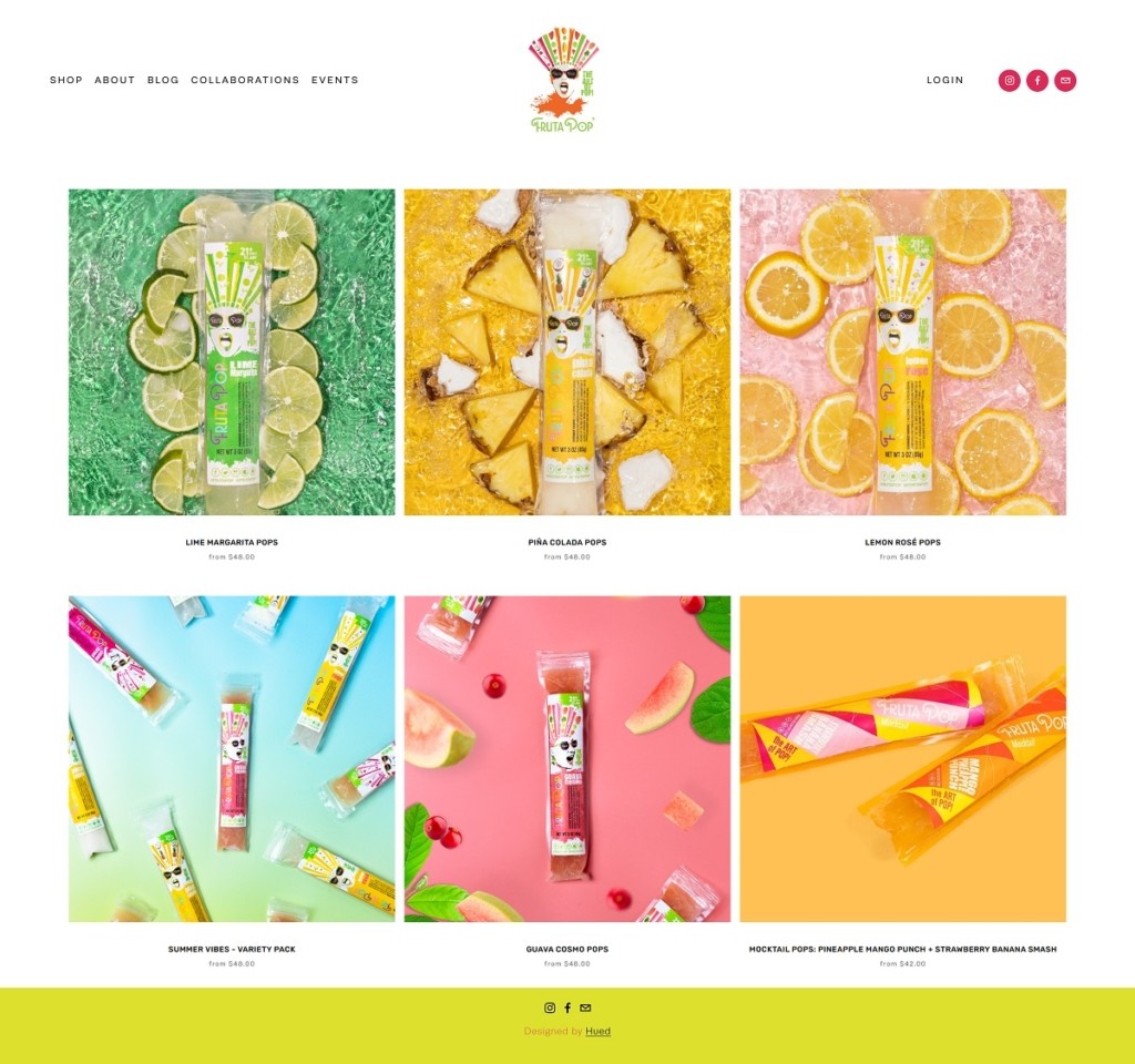 FrutaPOP has a bold, lifestyle-driven ecommerce website with vibrant visuals, playful messaging, and simple, shop-focused navigation. The design emphasises bright imagery and quick calls to action, creating a fun, energetic feel. The brand offers gourmet ice pops, including alcohol-infused “poptails” and non-alcoholic fruit, vegetable, and coffee-based options. Overall, it positions itself as a premium, design-forward take on classic ice pops with a modern twist.