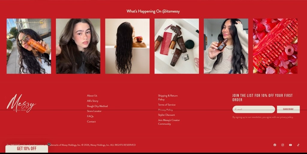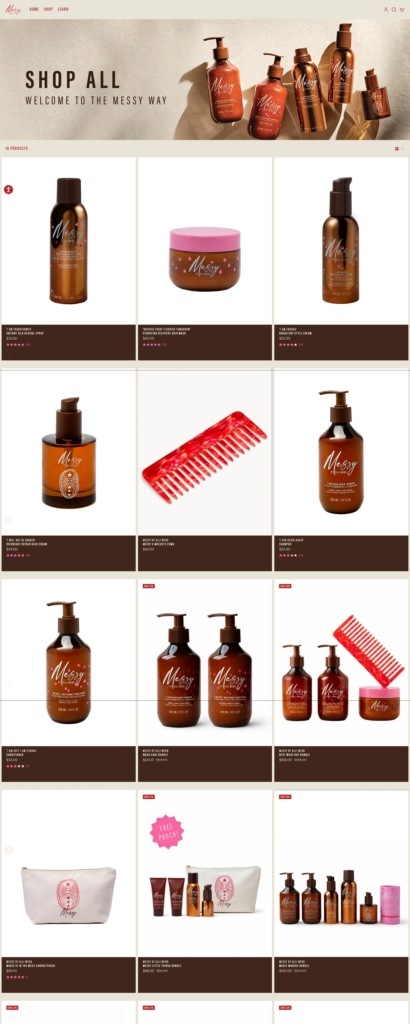 ItsMessy is a modern beauty brand with a clean, editorial-style ecommerce website that uses soft colours, large lifestyle imagery, and minimal navigation to highlight its hair-care collection. The site focuses on a small range of products—including shampoo, conditioner, styling cream, hair serum, spray, and treatment masks—designed to enhance natural hair texture and support a relaxed “rough-dry” styling method rather than heavy heat styling. The brand promotes vegan, cruelty-free formulas and positions its products as simple essentials for healthy, effortless hair.