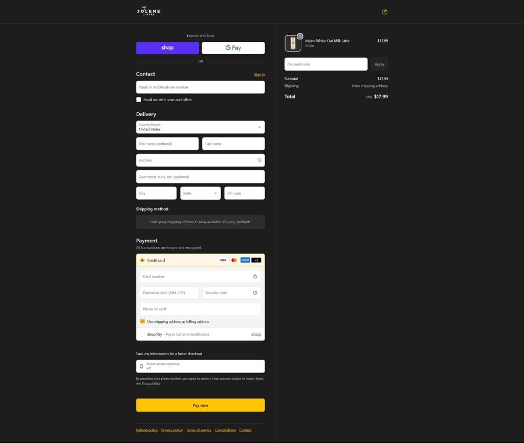 Jolene Coffee Checkout Page Example