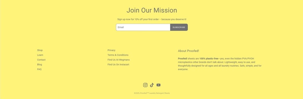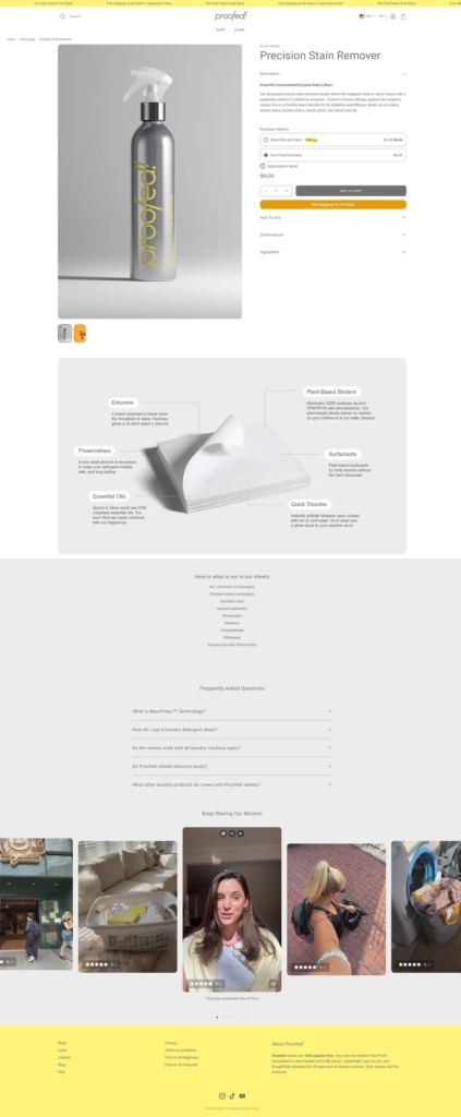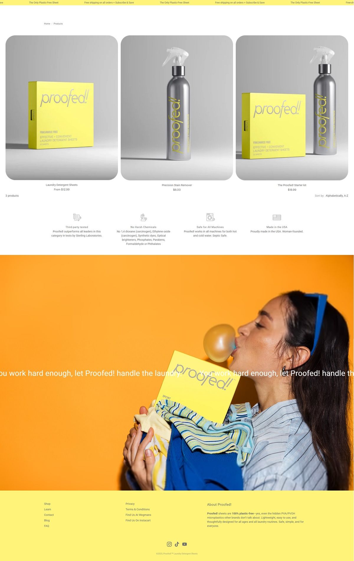 LiveProofed sells laundry care products, focused on lightweight, eco-friendly detergent sheets designed to simplify washing while reducing plastic waste. The website features a clean, modern design with soft colours, clear typography, and straightforward explanations of how the product works and why it’s more sustainable. The overall layout is simple and educational, guiding users smoothly from problem to solution.