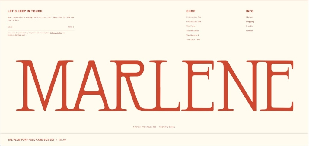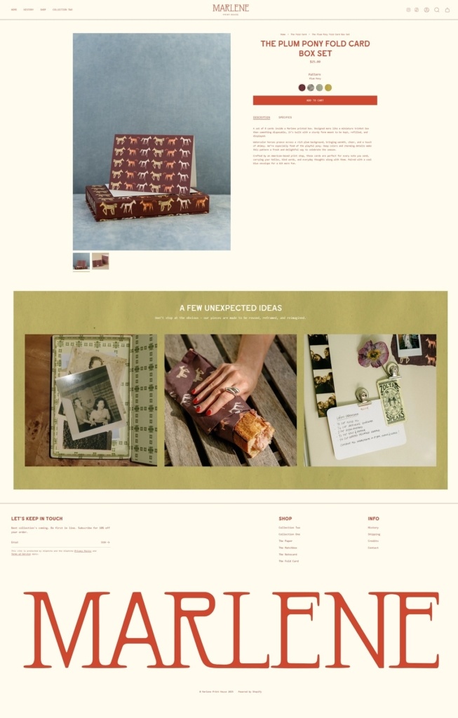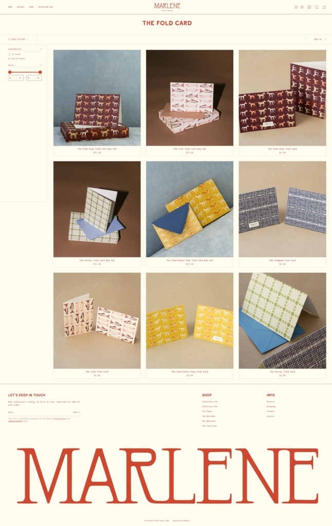 Marlene Print House is a creative studio and online shop specialising in risograph and art prints, along with stationery and paper goods produced in small, carefully crafted runs. The website features a clean, editorial-style design with generous white space, soft colour palettes, and a gallery-like layout that puts texture and print detail front and centre. The overall experience feels calm, artistic, and thoughtfully curated, mirroring the hands-on nature of the products.