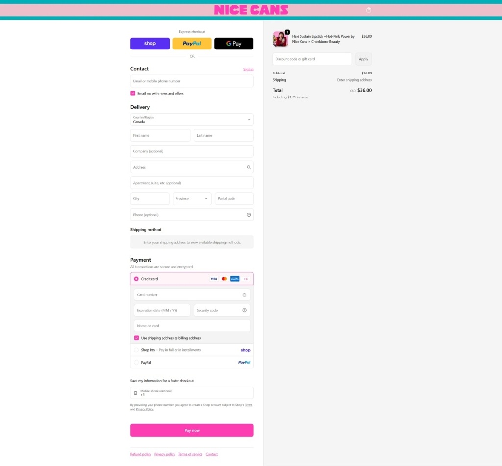 Nice Cans Checkout Page Example