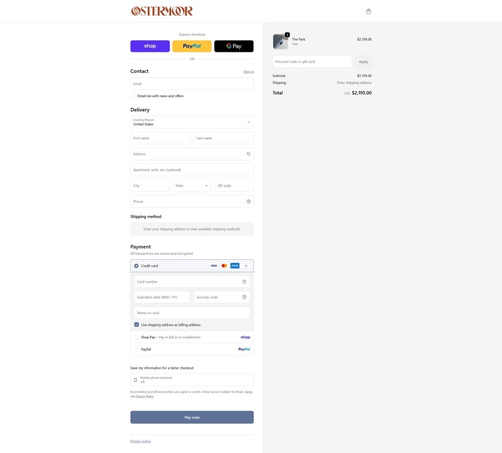 Ostermoor Checkout Page Example