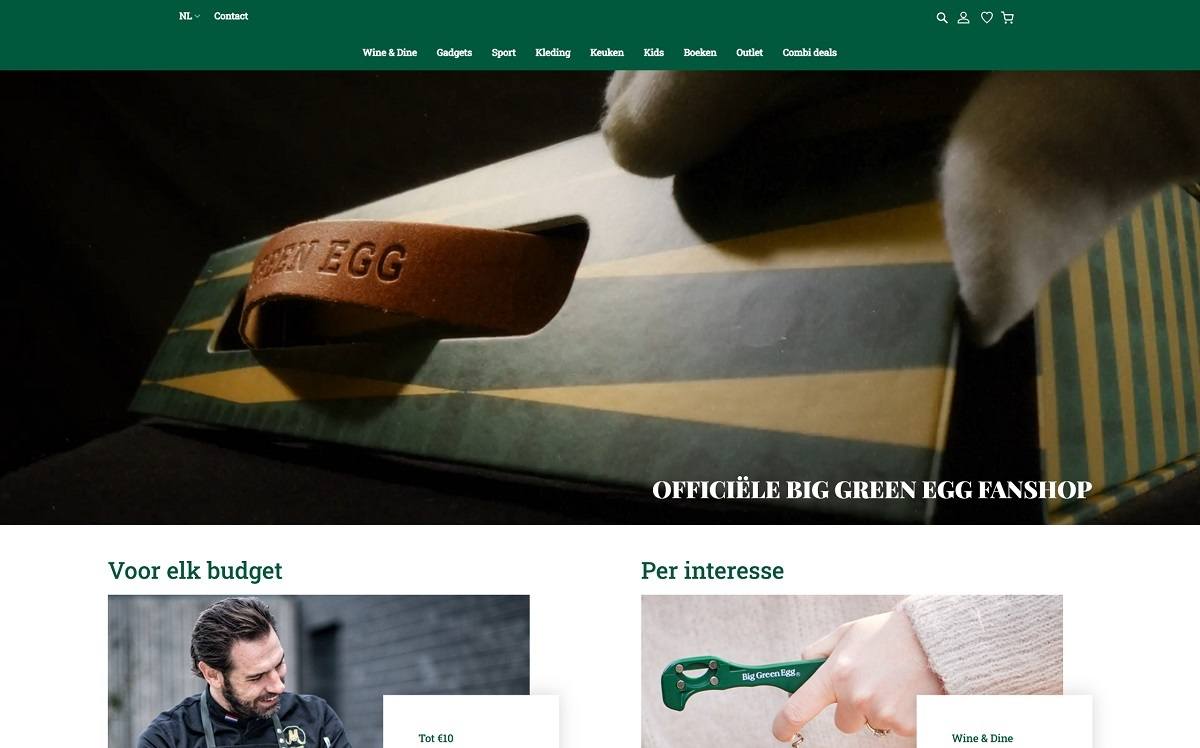 Big Green Egg’s fan-shop site leans into clean, e-commerce usability: strong navigation (by categories like Wine & Dine, Gadgets, Clothing, Kitchen, Sport) and prominent visuals of branded items. The product range is mostly branded merchandise and lifestyle accessories — think apparel, gadgets, kitchen tools, home goods — all carrying the Big Green Egg identity.