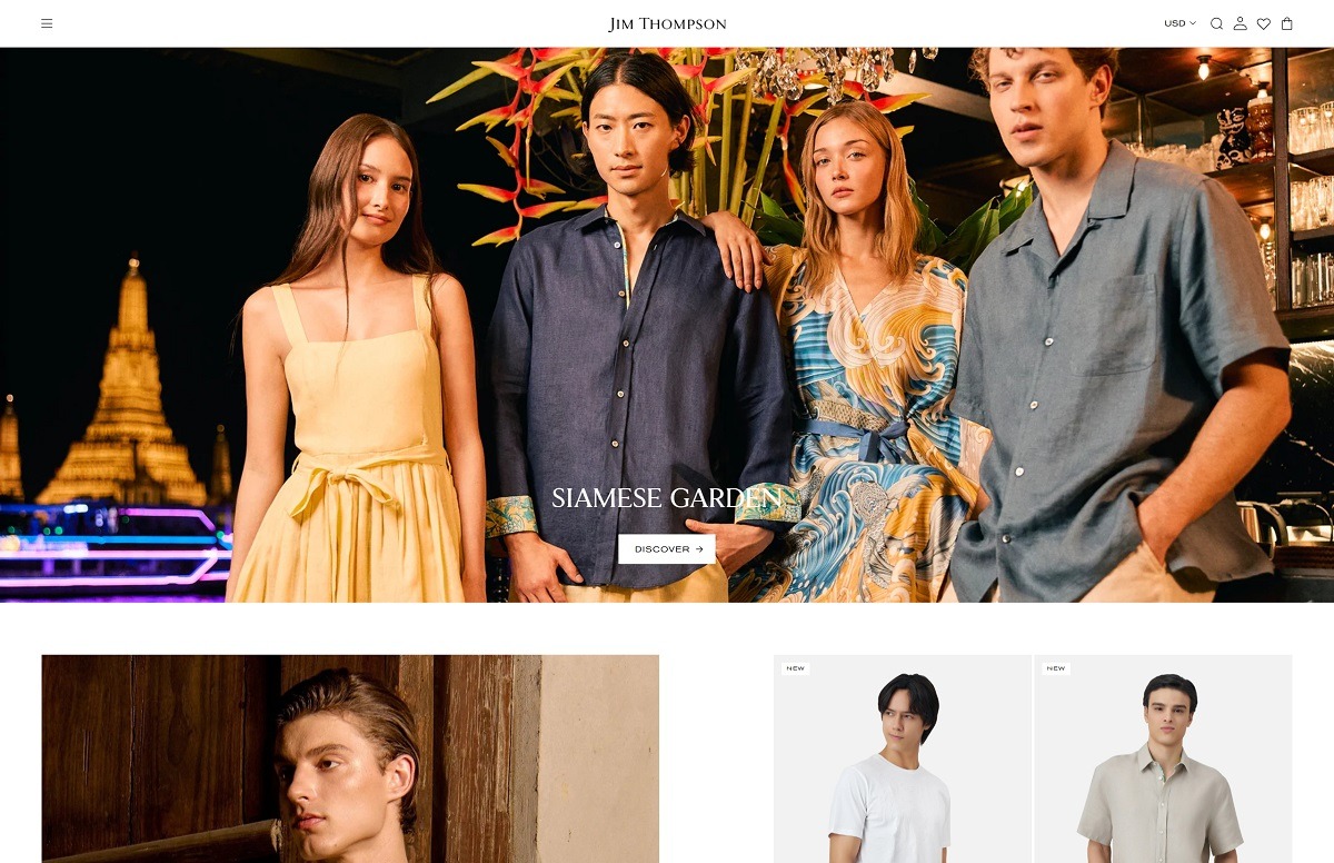 Jim Thompson’s website has a refined, high-end aesthetic with rich visuals, elegant typography, and a layout that balances fashion, home decor, and heritage storytelling. It showcases a versatile product range: resort & ready-to-wear clothing, silk scarves and accessories, bags, and decorative home pieces — all rooted in Thai silk tradition.