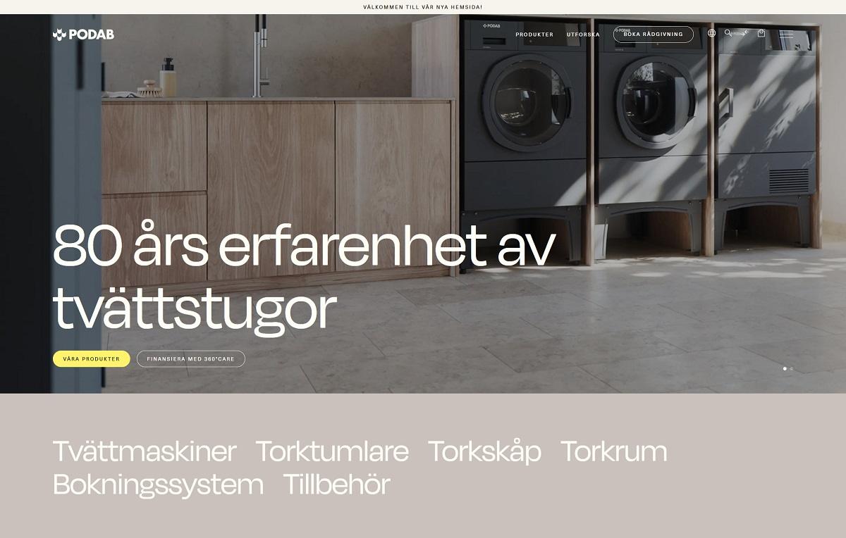 Podab’s site is clean and professional, with clear navigation and a corporate aesthetic suited to B2B audiences. They offer industrial laundry equipment—washing machines, tumble dryers, drying cabinets, and accessories—designed for durability and efficiency in demanding settings.