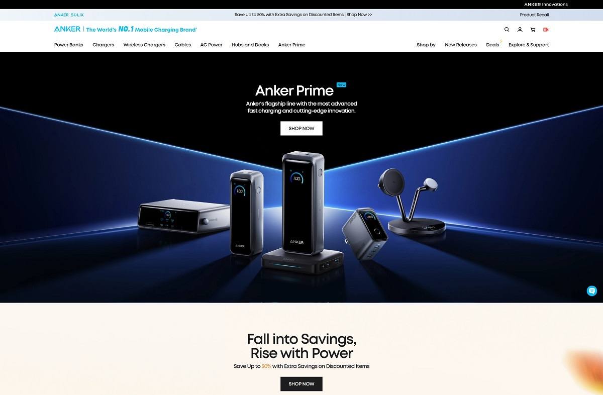 Anker’s website is sleek, modern, and purpose-driven, using clean layouts, bold product photography, and intuitive navigation to guide users toward tech essentials. Their product portfolio is rooted in power and connectivity: chargers, power banks, hubs, cables, portable power stations, and smart home / audio devices under its sub-brands.