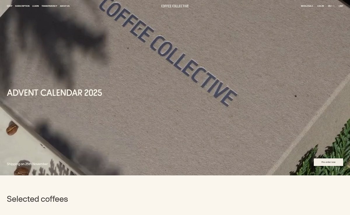 Coffee Collective’s website is clean, visually rich, and user-friendly: large, aromatic imagery paired with elegant typography and well-organized navigation. Their product range includes specialty coffees , brewing equipment, merch, and subscriptions of curated beans. They foreground transparency and sustainability in both design and content.