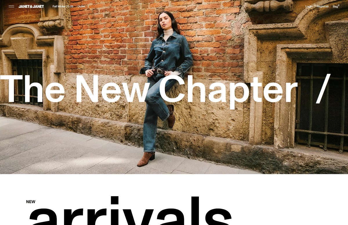 Janet & Janet’s website presents a bold, fashion-forward aesthetic with high-impact imagery and refined typography that underscores its Italian design roots. Their product focus is women’s footwear—boots, flats, heels, sneakers—crafted with an emphasis on style, detail, and urban elegance.