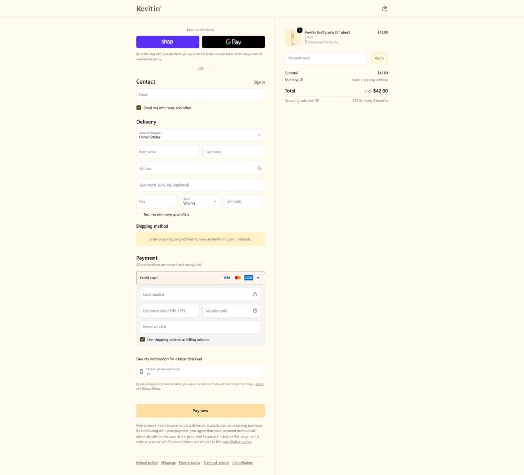 Revitin Checkout Page Example