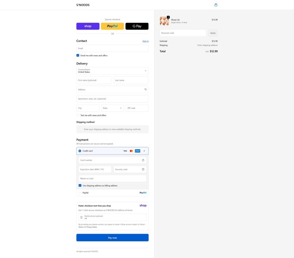 S’NOODS Checkout Page Example