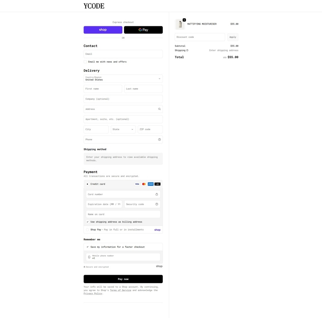 YCODE Checkout Page Example